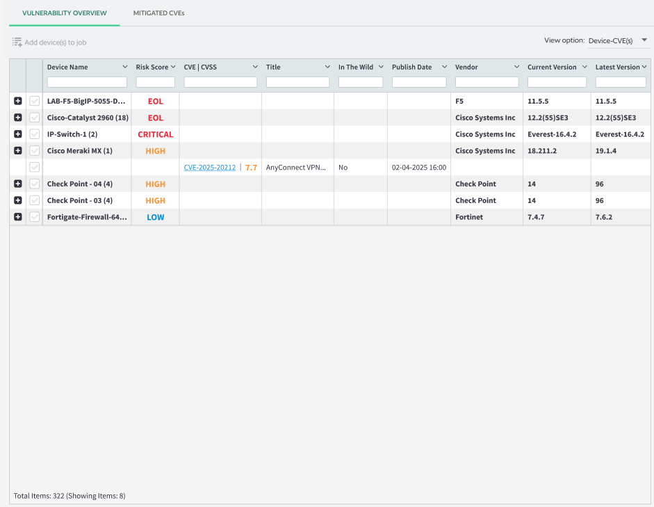 Proactively identify active exposures to which you are vulnerable and choose to automatically mitigate the vulnerability by making a configuration change or remediate the vulnerability by updating the device software.