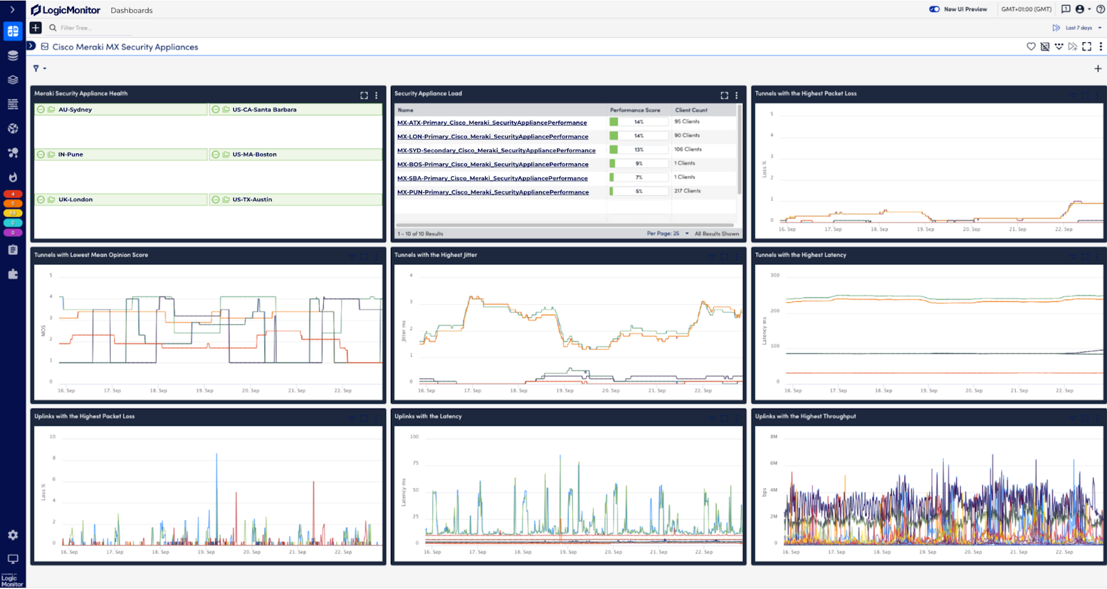 LogicMonitor enables organizations to visualize, trend, and forecast the availability, health, performance, and capacity of Cisco Meraki devices in the broader context of a heterogeneous hybrid and multi-cloud infrastructure.